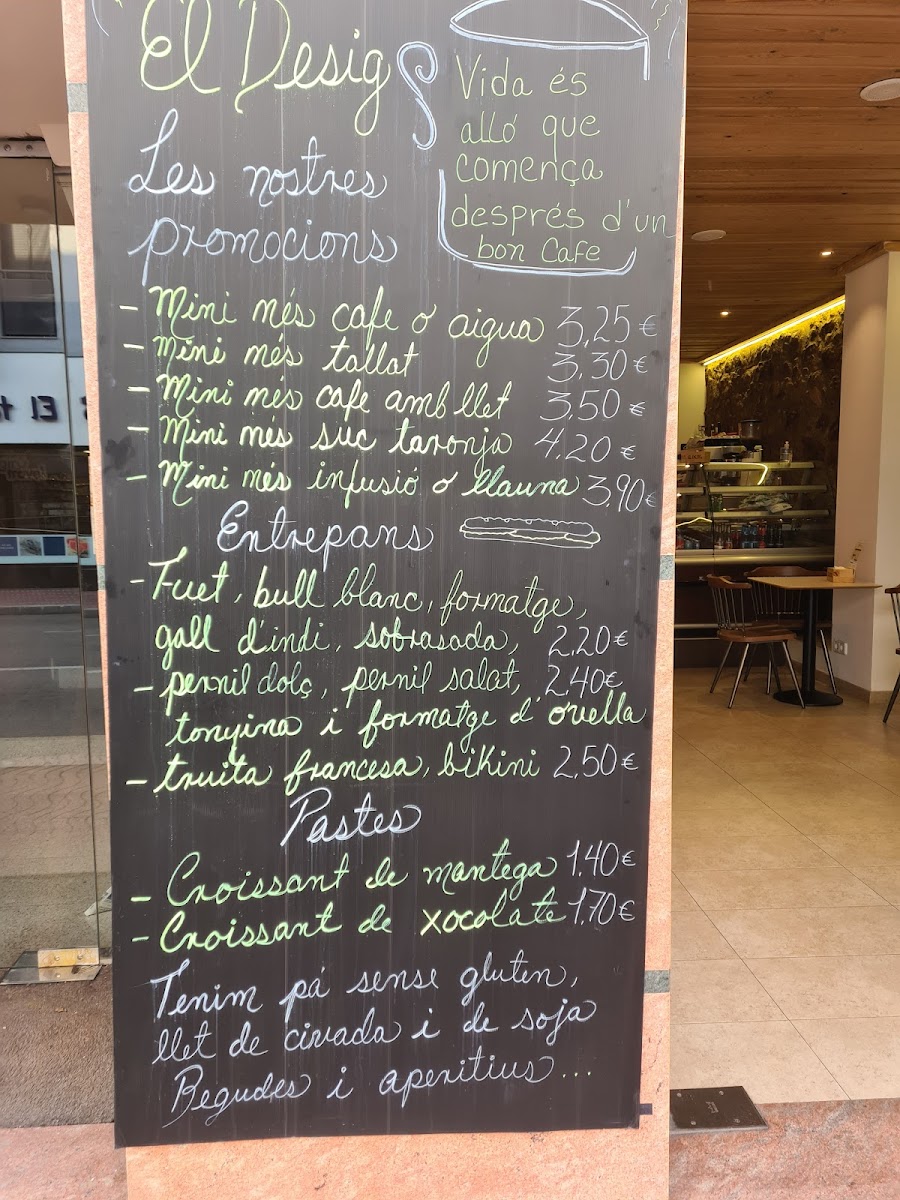 The moment you step inside, you'll be enveloped by the inviting atmosphere, a blend of cozy decor and friendly smiles that immediately make you feel at home. With its modest size, El Desig exudes a charm that's hard to resist—a perfect backdrop for savoring delicious meals while catching up with friends or simply enjoying a quiet moment to yourself.